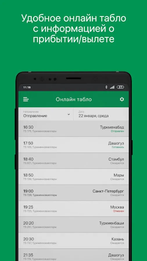 This is a convenient application with a clear interface and responsive design. Thanks to convenient navigation and search, you can easily find information of interest. The application is available in three languages - English, Russian and Turkmen. The push notification function will notify you of new information or warn you about a flight.