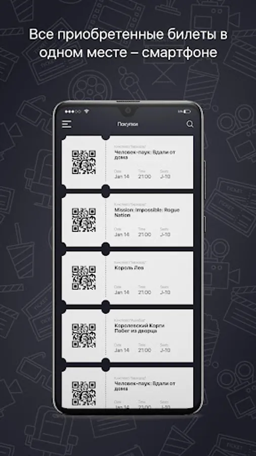 E-tickets. No need to print tickets on the printer. It is enough to present them on the smartphone screen at the entrance to the hall.