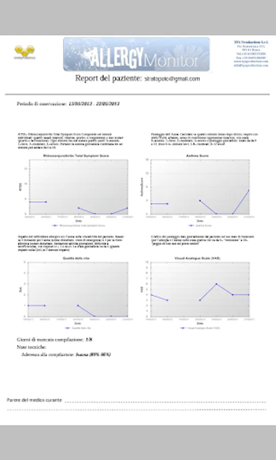 (Rhinoconjunctivitis Total Symptom Score [RTSS], Asthma score, QoL and VAS) allowing you to monitor your