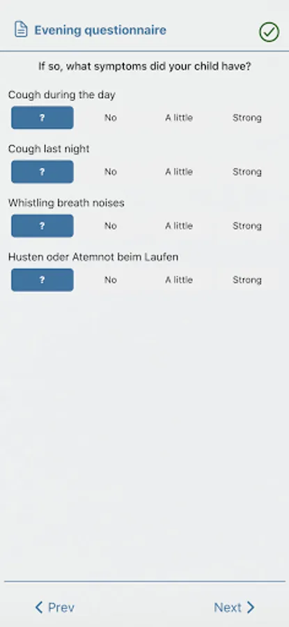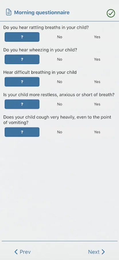 With this asthma app you can document your child's respiratory symptoms without any effort or prior knowledge. In a user-friendly short questionnaire, you will be asked once a day to document your child's state of health. The doctor can enter your child's individual asthma medication plan for you directly in the practice, making it easy to record the necessary intake and applications. If your attending doctor also uses WheezeMonitor, he / she can get a comprehensive overview of your child's respiratory symptoms in a matter of seconds.