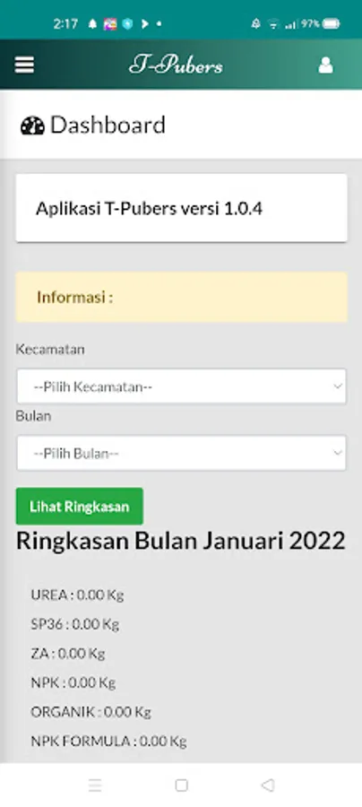 The T-Pubers application is an application developed by the Directorate of Fertilizers and Pesticides, Ministry of Agriculture of the Republic of Indonesia which is used to make subsidized fertilizer redemption transactions. This application is operated by subsidized fertilizer retail kiosks to make subsidized fertilizer redemption carried out by farmers who have enrolled in the e-allocation application of 2023