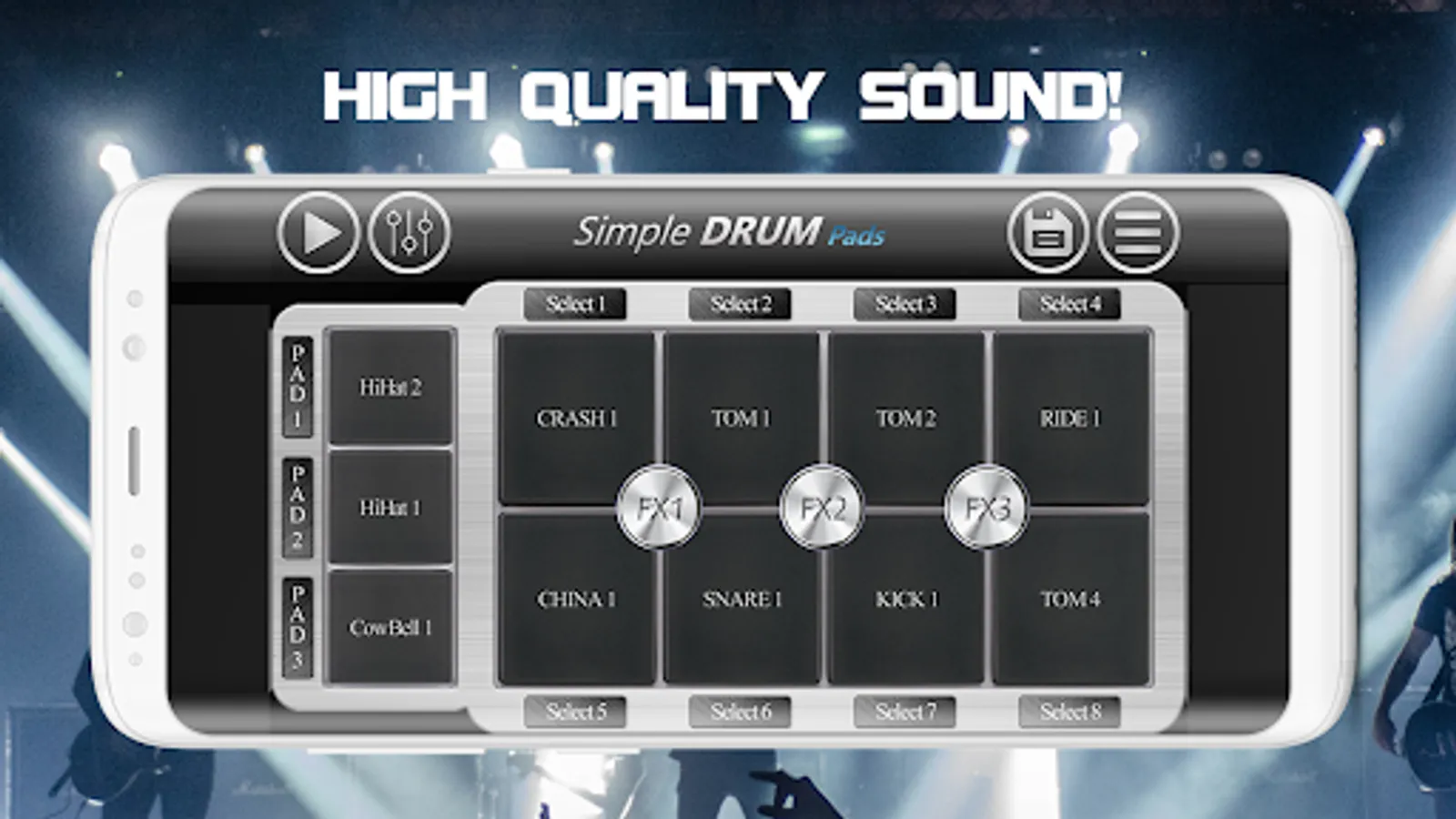 Simple and fun! This Drum Pads app comes with 40 jam tracks, and with 25 realistic percussion sounds. It has 11 different drum pad that you can modify as you like. You have the opportunity to hundreds of different variations, and you can save your preset drum pad for later use. Really easy and simple to use. High quality studio sounds. Quick response time. Supports multi-touch. Have Fun!