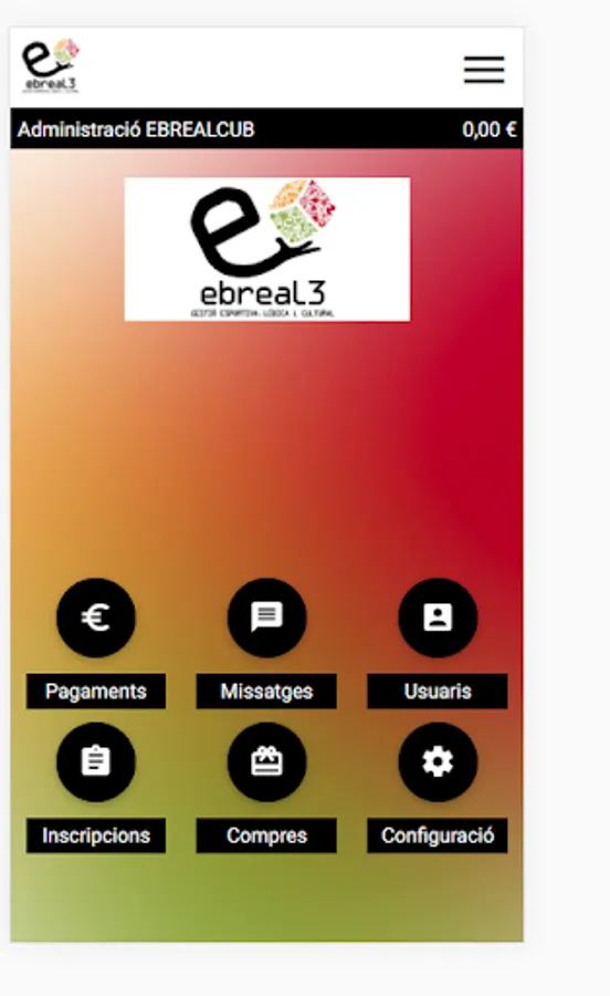 With the Ebreal3 app and your mobile you can make all payments and registrations quickly and easily. To use it you must enter your code and password that Ebreal3 sent you or what you will receive by email once you register.