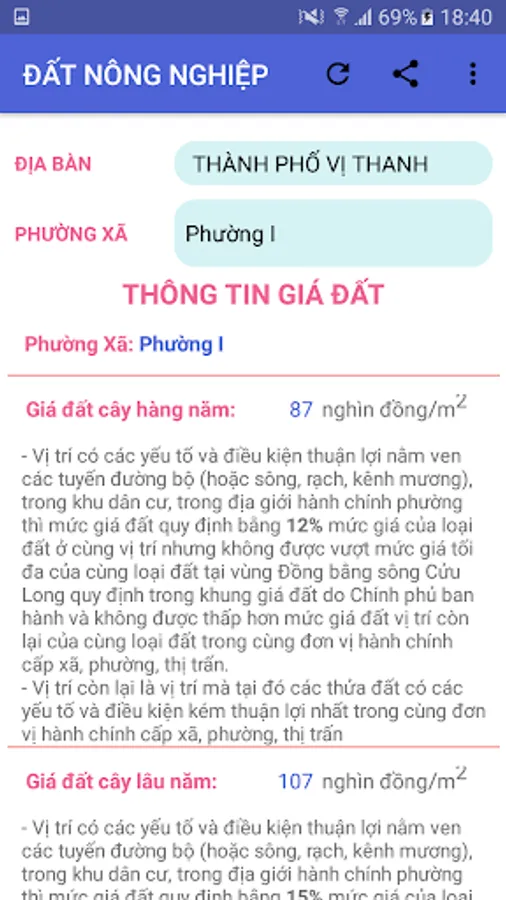 - Support to look up agricultural land (land for annual crops including rice land, land for other annual crops; land for aquaculture; land for perennial crops)