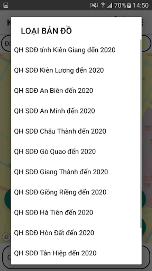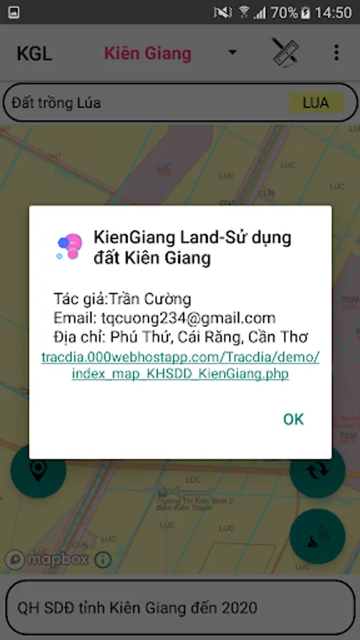 - Support to look up land use planning, land use plans in districts Kien Luong, An Bien, An Minh, Chau Thanh, Go Quao, Giang Thanh, Giong Rieng, Ha Tien, Hon Dat, Tan Hiep, U Minh Thuong, Vinh Thuan.