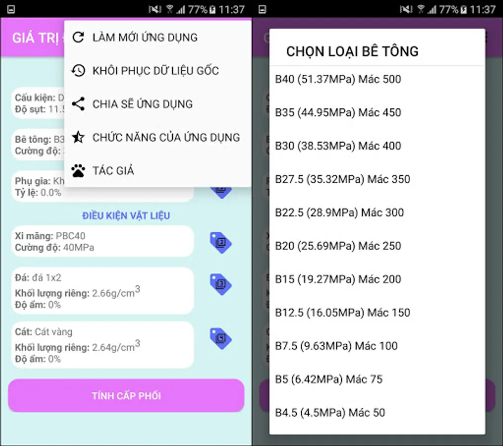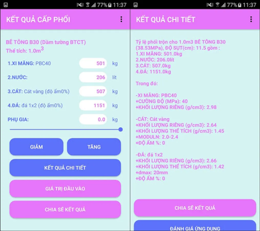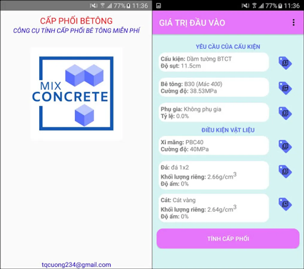 - Supporting basic input information: physical properties of concrete strength, cement strength, specific gravity, sand volume volume ...