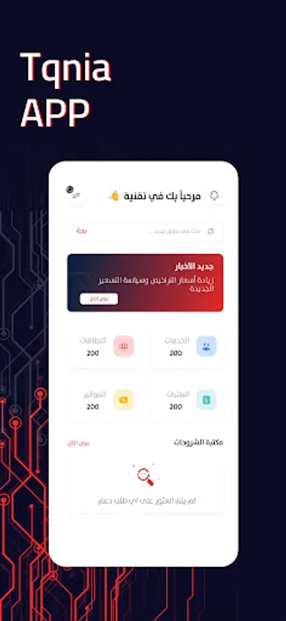 Taqnia offers you the application of CS technology for the services of our valued customers, to follow up project requests, services, technical support requests, and to view services, domains, and invoices with ease.