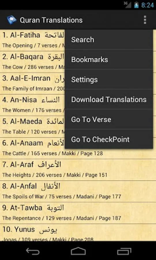 Quran Translations provides the following features: