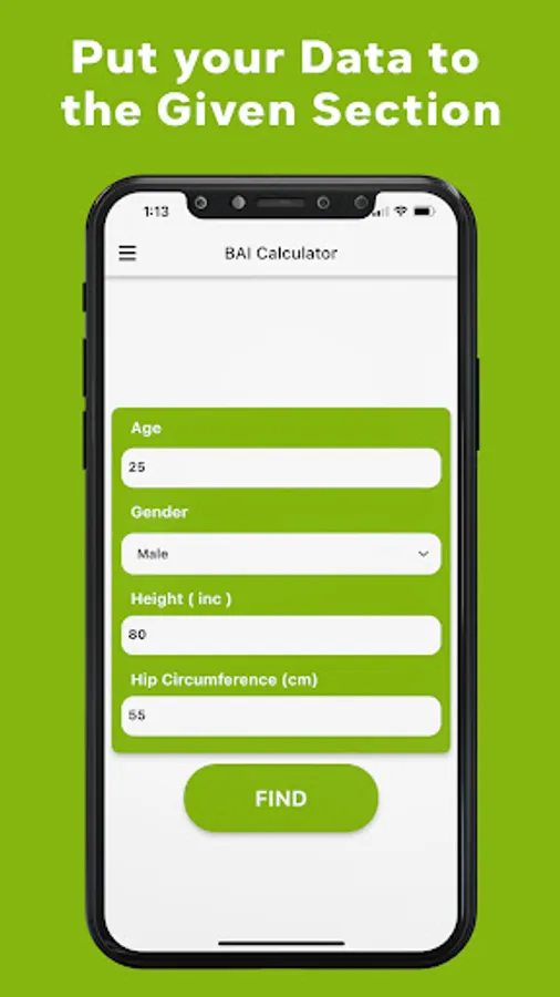 Give a try to this BAI Calculator – Body Fat and start calculating fats of your body with this app. Just insert info about your hip size and height to quickly calculate the required daily calories to intake or avoid with this body fat calculator.