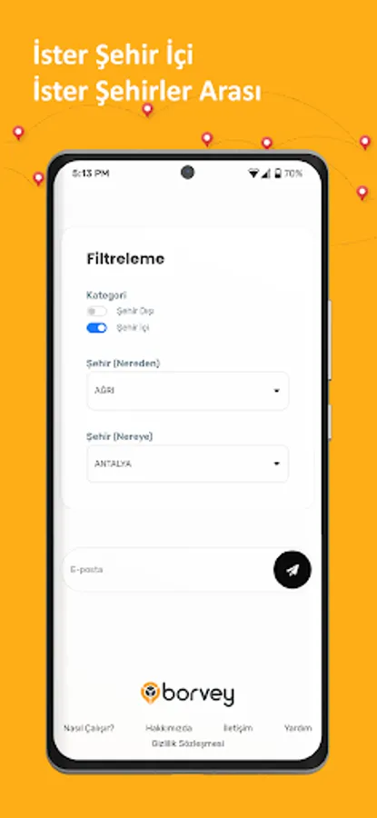 borvey, as a modern and user-friendly mobile application, is designed to meet your transportation needs quickly and reliably. You can choose Borvey to transport your goods safely, to facilitate inter-city transportation processes or to transport your cargo with a reliable logistics network.