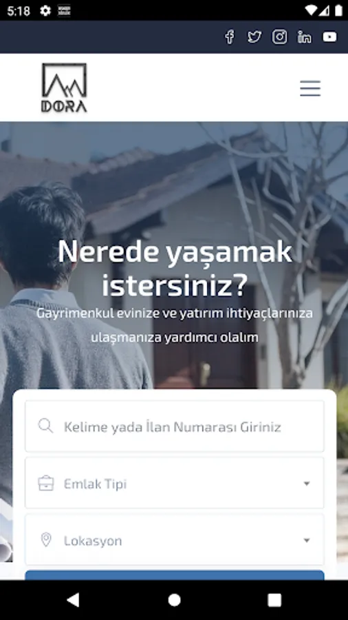 Dora Emlak, ev arayışında olanların en iyi yardımcısıdır. Dora Emlak uygulaması sayesinde ev, arsa, villa ve daha birçok emlak seçeneği arasında kolayca arama yapabilirsiniz.