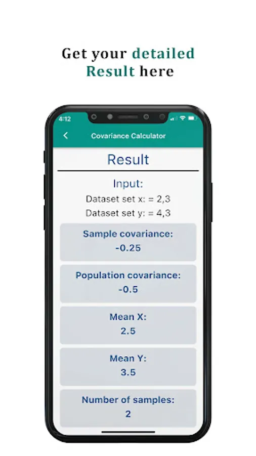 Check this Covariance Calculator to easily find relationships between two datasets. Insert values and this app will auto calculate and provide you accurate results.