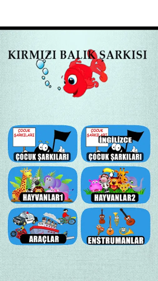 In this application, you can use red fish and many children's songs comfortably without eating your internet package, you can also improve your child's ear with English children's songs and you can find animal sounds cow, chicken ... and automobile vehicle bucket tractor .... sounds instrument sounds violin piano etc. .