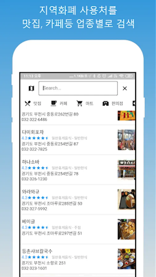 (Restaurants, convenience stores, marts, cafes, etc.)