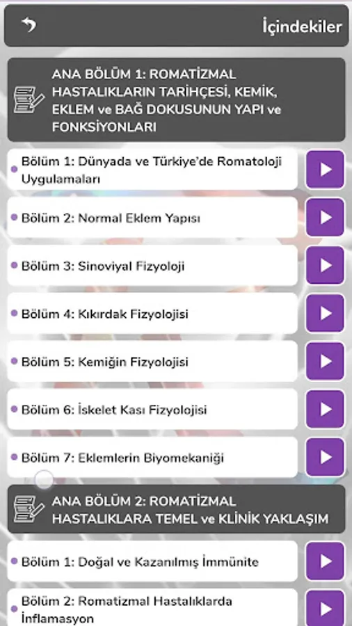 Rheumatology e-Book is a book that targets the musculoskeletal system and includes the common efforts of specialists in the fields of rheumatic diseases, physical medicine and rehabilitation, internal medicine and orthopedics. The main purpose of the Rheumatology e-Book, which consists of 17 main chapters and 121 chapters in total, is to create an up-to-date, extensive and easily accessible resource in the field of rheumatology.