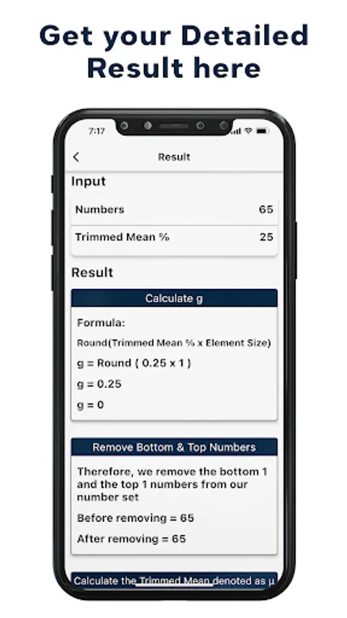Get this trimmed mean calculator average number. Insert value of your desired item to calculate the trimmed average value. Use this app anywhere and anytime without hassle. Auto calculate the trimmed mean values with this average calculation app.