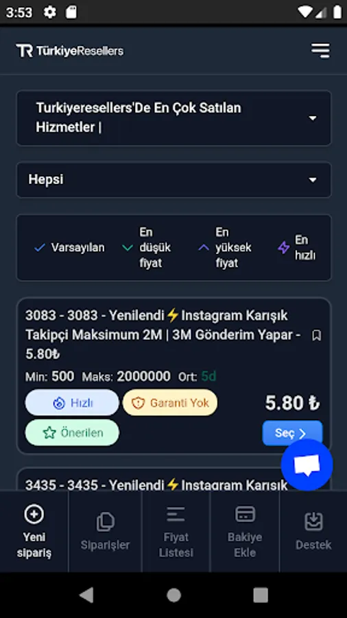 Turkiyeresellers'da ucuz ve anlık servisler sizin için özel olarak ayarlanmıştır. Size uygun servisi seçip işlemlerinize hemen başlayabilirsiniz.
