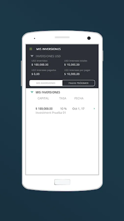 Through our application you will have access to information on your investments; You can view your contracts, hire dates, invested, payment dates capital and proof of transactions.