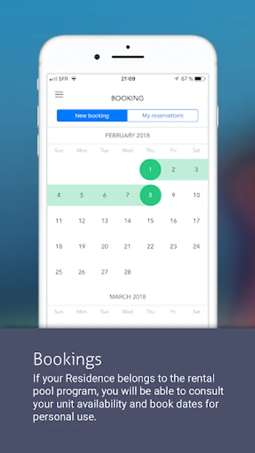 If your Residence belongs to the rental pool program, you will be able to consult your unit's availability and book dates for personal use.