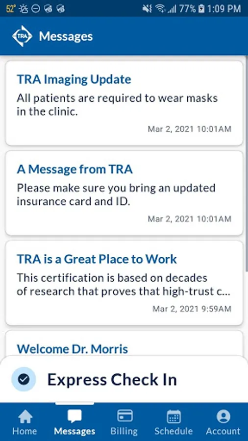 The TRA Medical Imaging app makes scheduling your imaging appointments quick and easy. Using the app, you can make your appointments, fill out any necessary forms or documents, and even check-in to your appointment using your mobile device, rather than waiting in the waiting room.