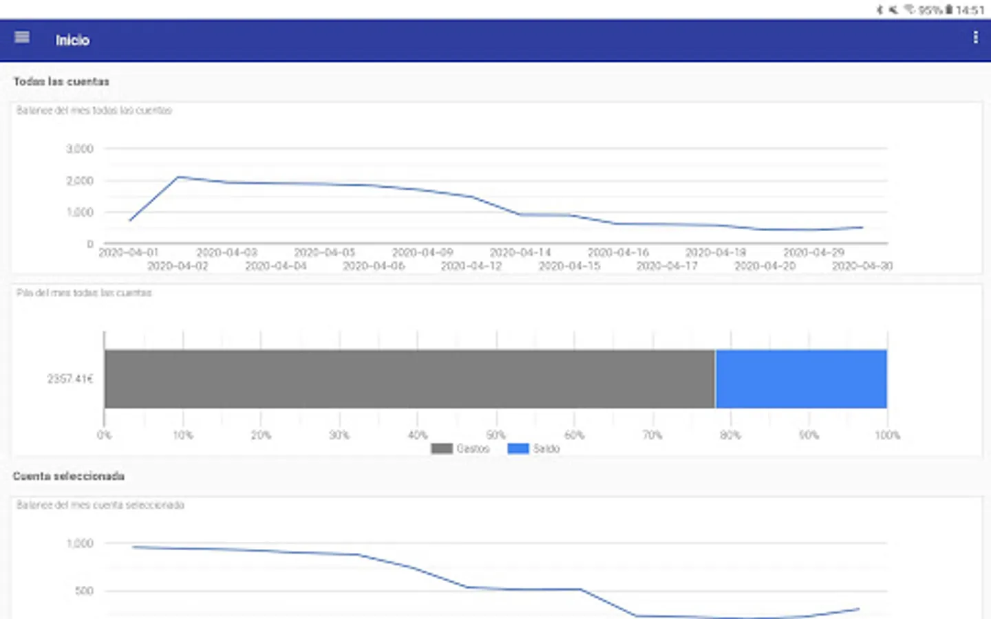 Through a simple interface you can keep track of your home finances and view the data through graphs.
