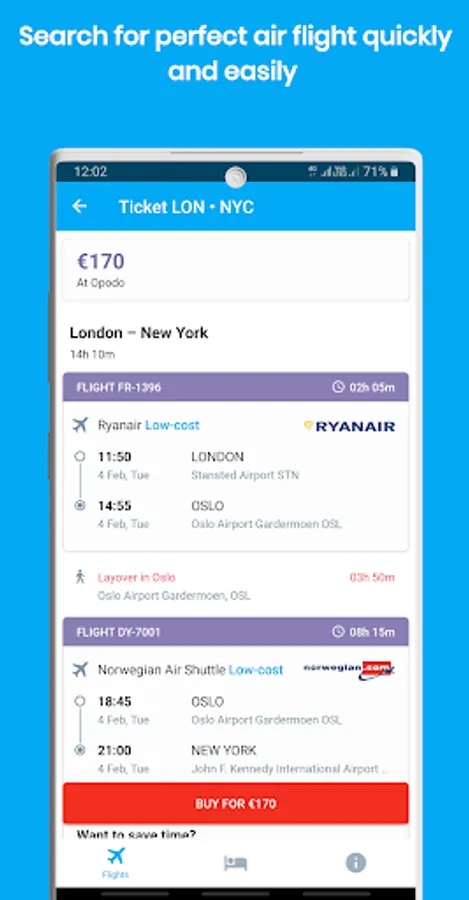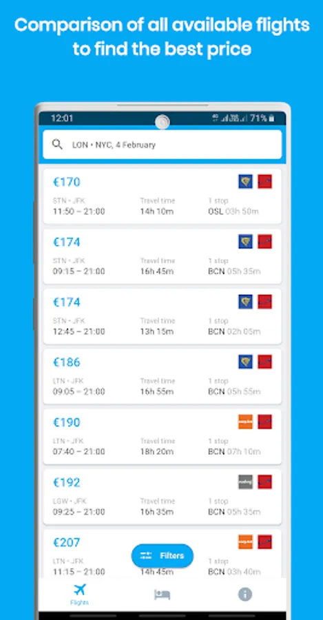 Search engine to search and compare all hotels and air flights to find the cheapest ever and book your low cost trips at the lowest price ever through a single app!