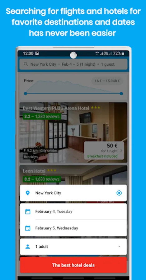 Install now the best app to book travel and holidays to choose the best offer among thousands of hotels and cheap flights for any type of travel (summer holidays , beach holidays, city holidays, mountain holidays in the snow for skiing, business travel, etc.) and any destination (Europe - France, Spain, Germany, United Kingdom, Italy, Rome, London, Paris, Berlin, .., America - United States, Mexico, Cuba, Santo Domingo, New York , Miami, Las Vegas .., Turkey, China, Thailand, Australia, Bangkok, Dubai, Kuala Lumpur, Istanbul, Singapore, Bali, Antalya, Maldives, Seoul ..).