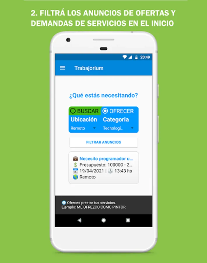 You can use the app as a Worker to OFFER your services or as a client to HIRE someone to solve your demands.