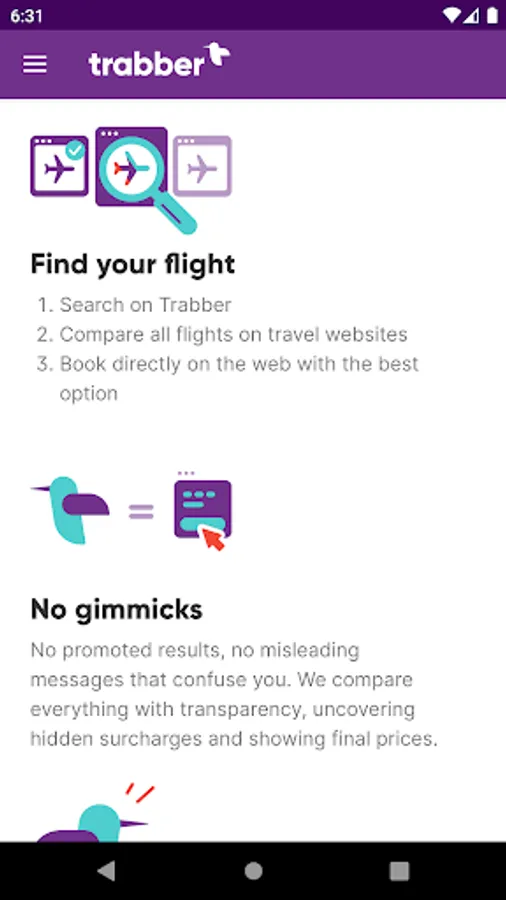 We only compare, we do not sell. Other applications present themselves as comparators but they actually sell flights directly. We make a fair comparison and we offer you all the links so you can book what suits you best.