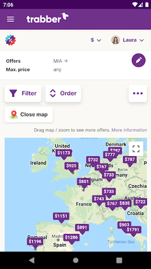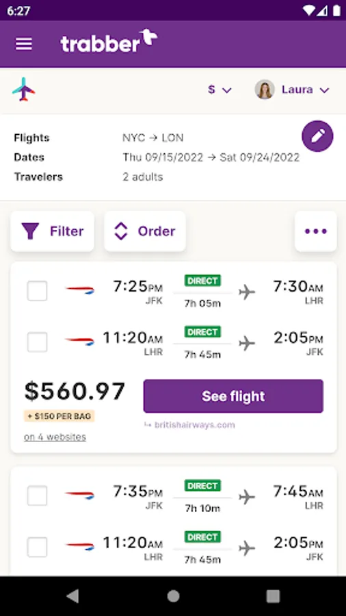 In Trabber you will directly see the prices of the websites in which we search. We do not charge any commission.Custom price alerts