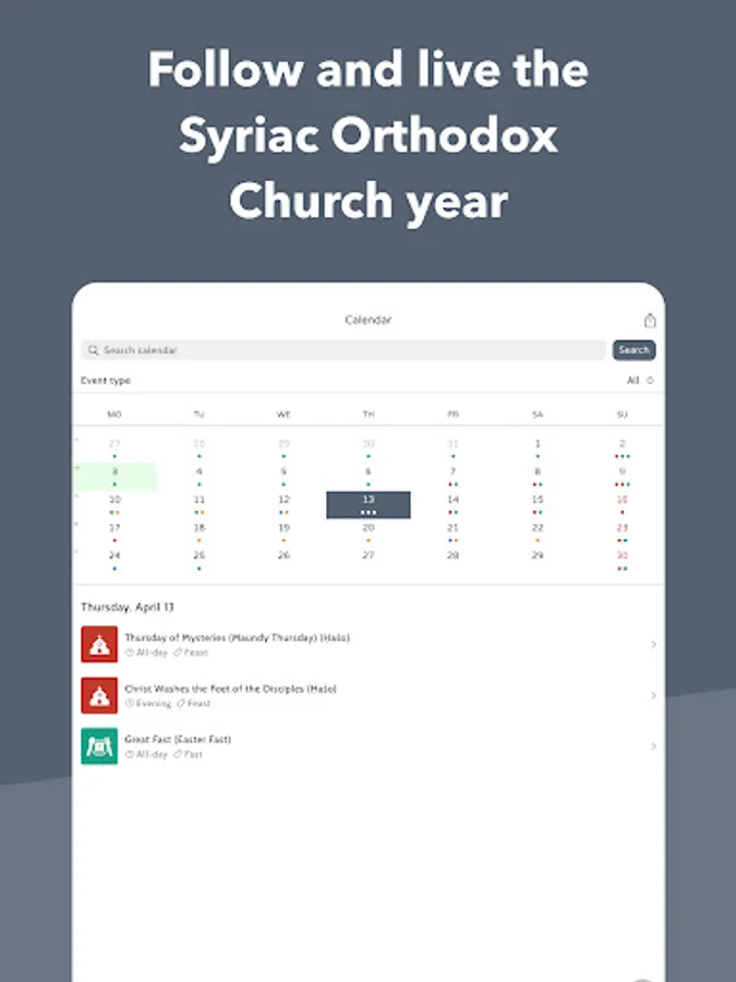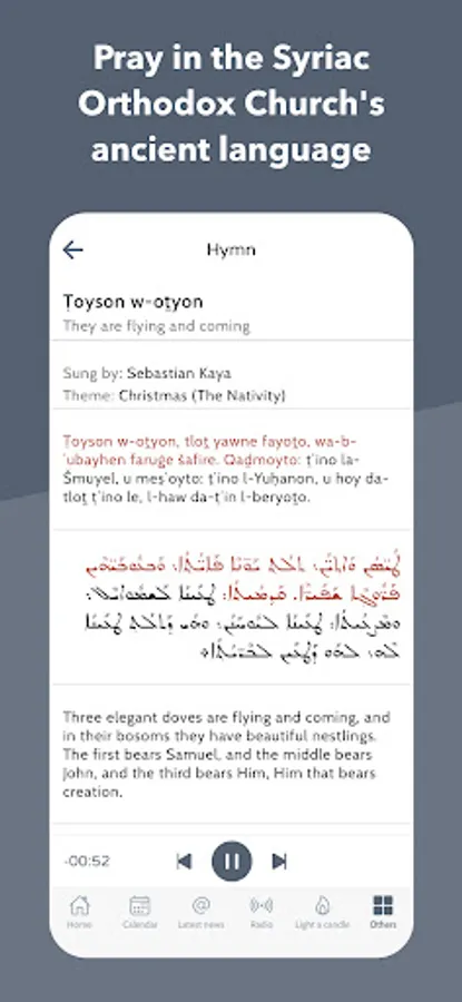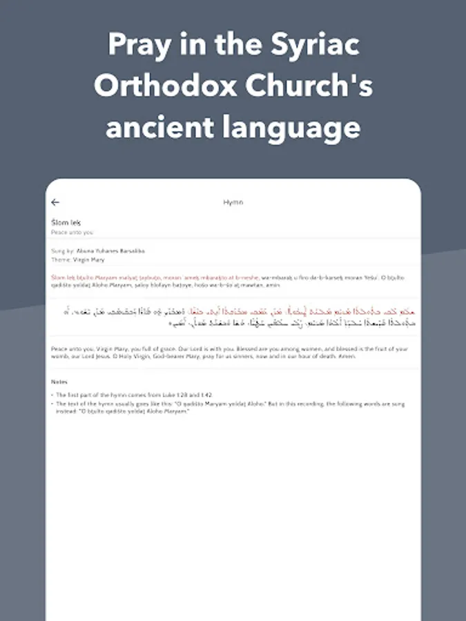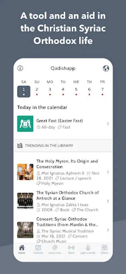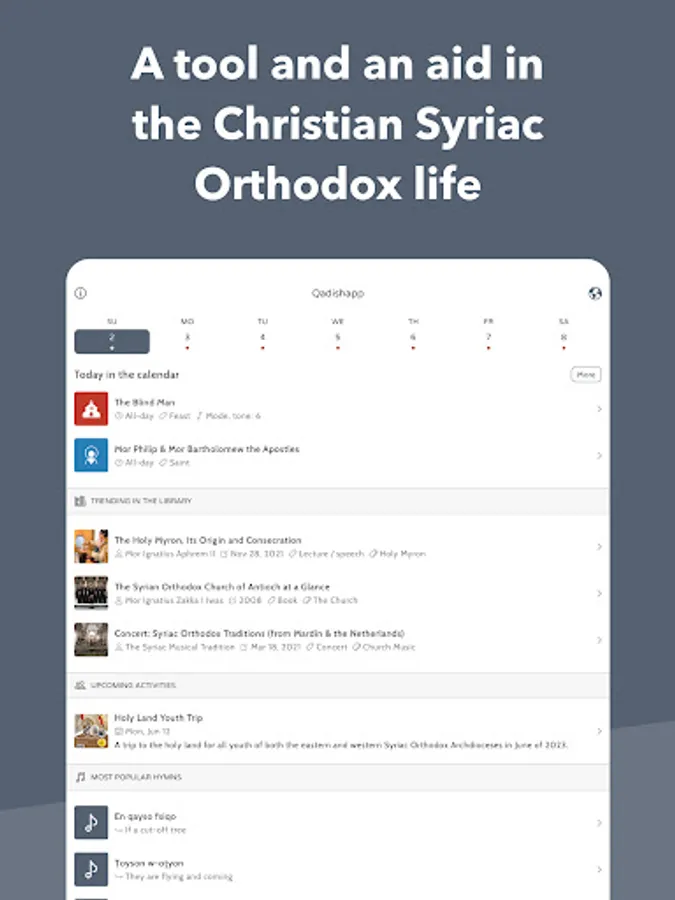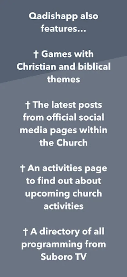 Qadishapp is a Syriac Orthodox Church app that includes: