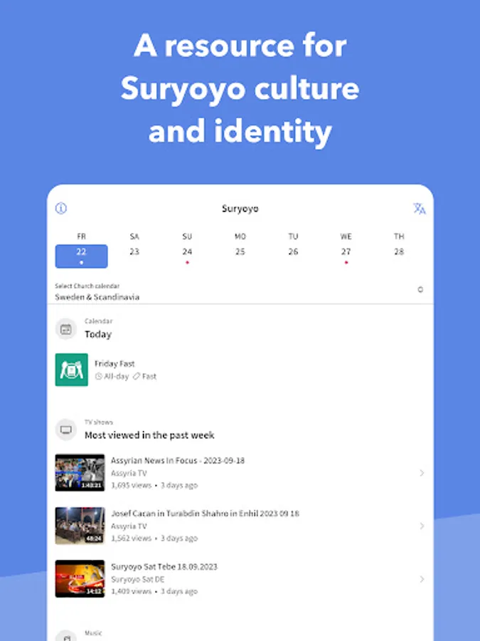 The Suryoyo app gives you access to an ancient culture, in the palm of your hand. The app includes: