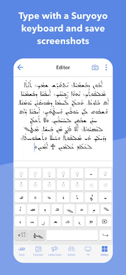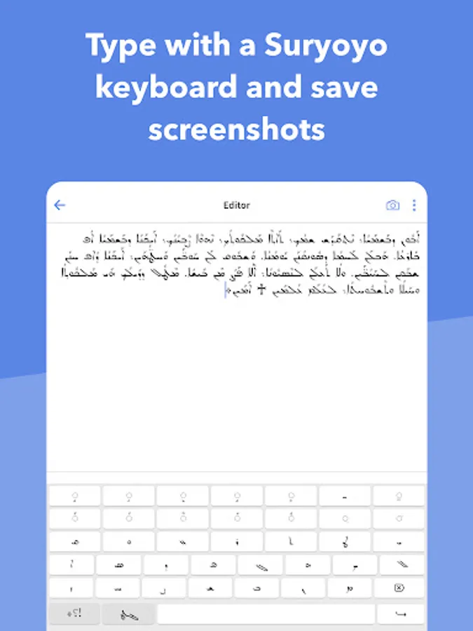 • A Syriac text editor with the possibility to save screenshots of the typed text.