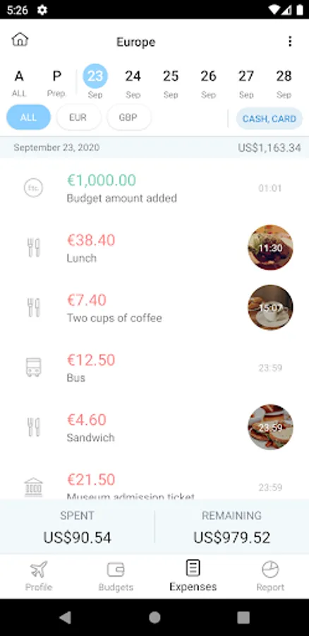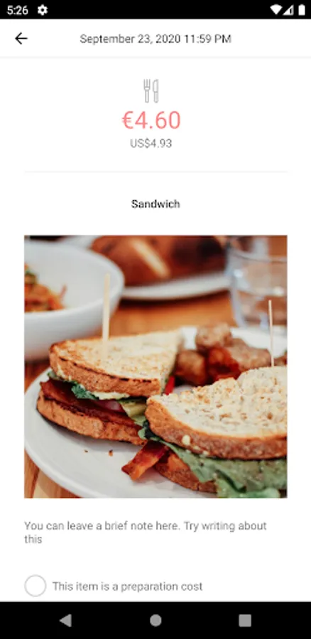 Add a note and an image to the spending. A Note and image of spending are like a small diary.