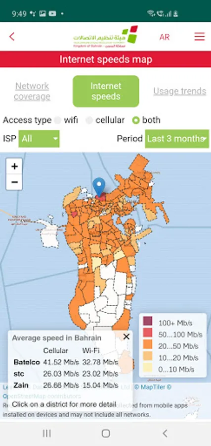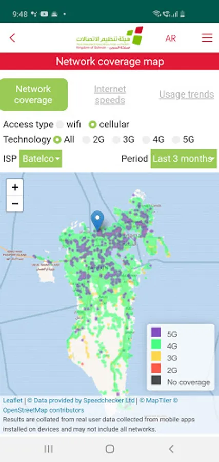 • Coverage Map – (Only for Bahrain; Identify the coverage of the service provider)