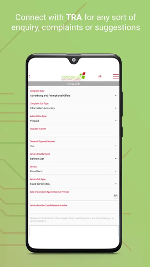 TRA Bahrain works with Urbansoft to bring you the TRA app. The purpose of the app is to help its customers with issues that could be resolved instantaneously with minimal hassle. The app works with the following features.