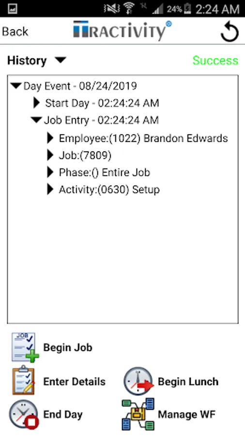 iTrac+ data connects with Tractivity TracManager system via an Internet connection. User transactions are accessible to TracManager software in real-time indicating the current employee activity in real-time.