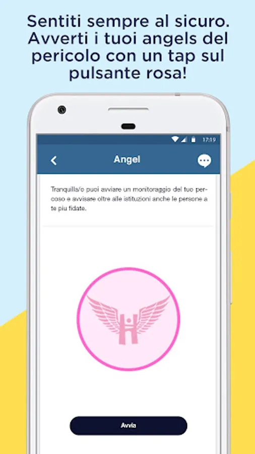 intervene in dangerous situations. Just a tap on the pink button to send a