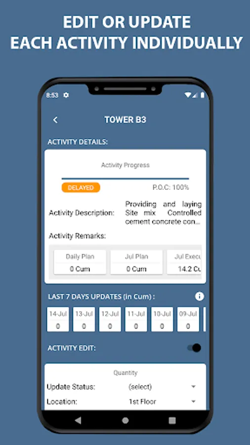 - Daily Progress Reporting: For both quantitative and labour reporting.