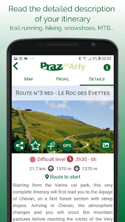 With the Praz app on Arly-Destination Trail, discover the 7 trail tracks in summer but also hiking and mountain biking routes, circuits suitable for families. In winter, go on the snowshoe routes and the new ski touring route.