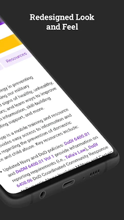 The 2022 upgrade features new materials, videos and creative interfaces to make this required training more intuitive, interactive and educational. The upgrade includes information about healthy relationships, intimate partner abuse, reporting options, and the requirement for all instances of child abuse to be reported to the Family Advocacy Program. The DVP-AH app is designed to satisfy the following learning objectives: