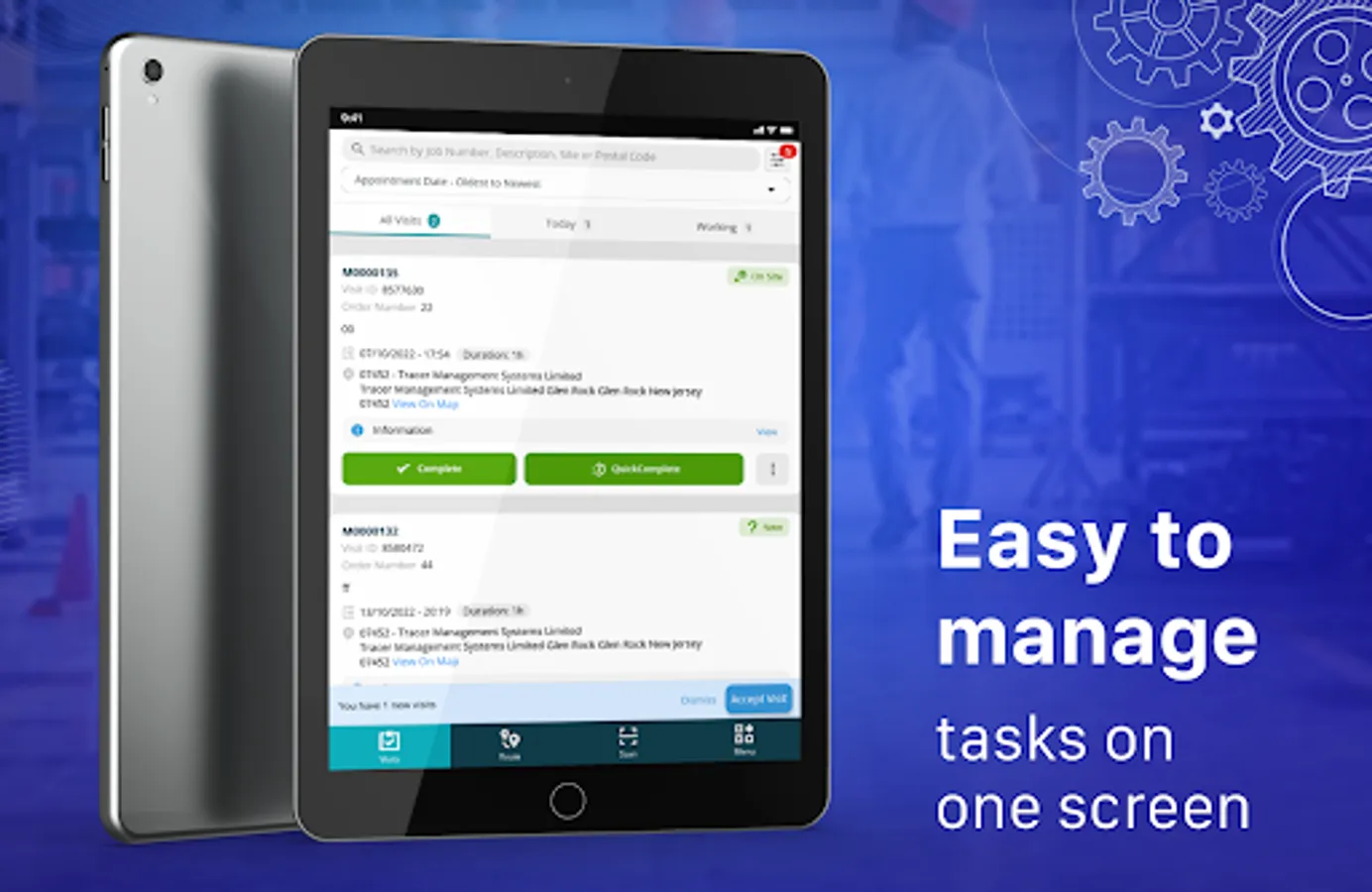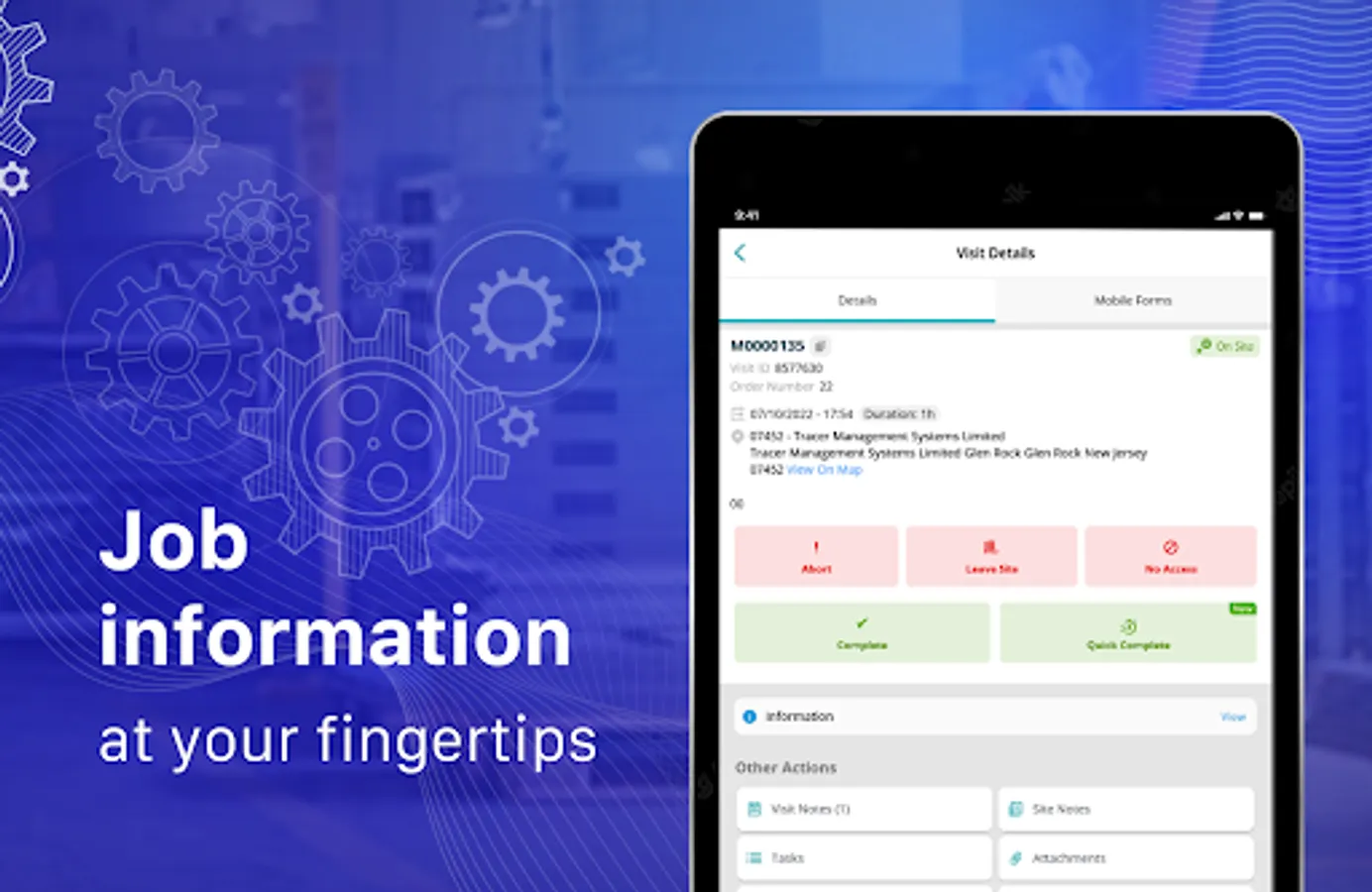 Engineers can capture time sheets, notes, parts, expenses, mileage, photos and signatures eliminating the need for paper jobs sheets and expensive trips to the office.