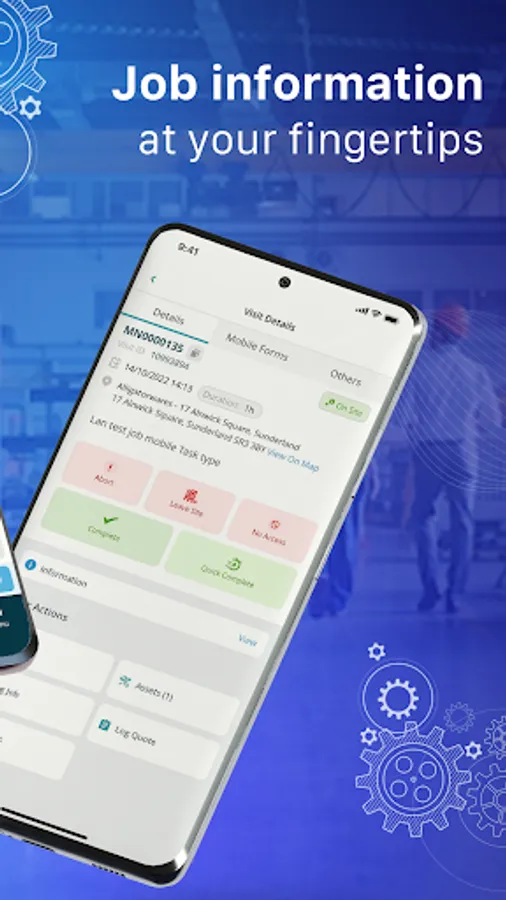Joblogic Mobile allows operatives to receive useful job information such as address, assets, office comments and site notes.