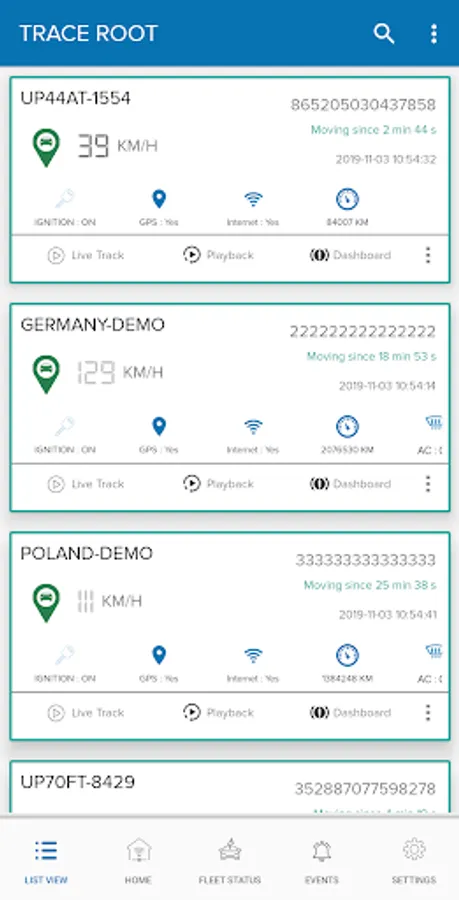 5. If entered details are correct you will get a list of device screen, where you may click on the individual device to get there further details and track them.