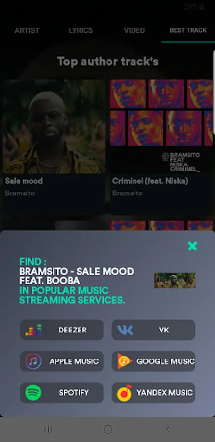 Its a quick song searcher that will take a few seconds to identify the song name, give you results about the artist biographies, let you play the song, you can listen in full to the songs you have identified watch their videos on YouTube. and more.