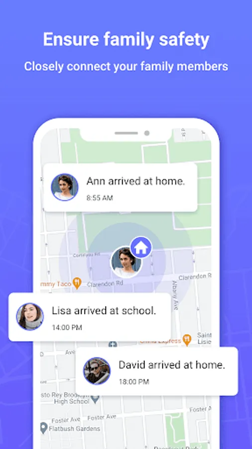 √ Get notification when family members are nearby