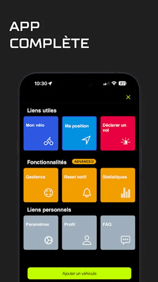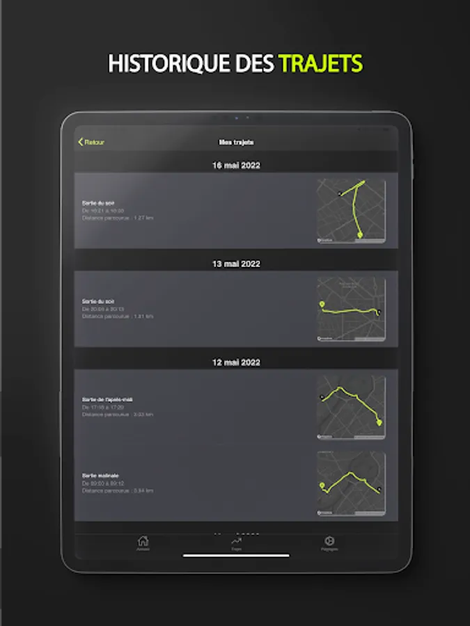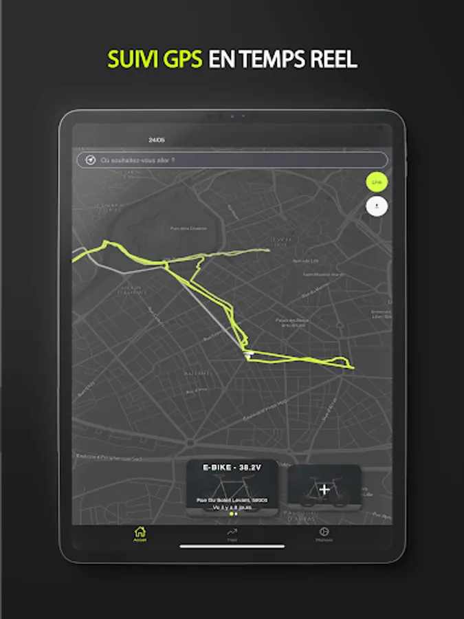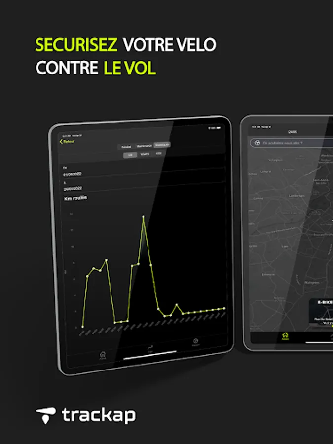 With the Trackap app, control every movement of your connected bike, improve its maintenance, view your journeys and your statistics. The app will also allow you to create routes in order to be guided during your travels.