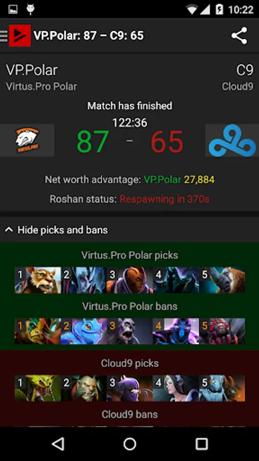 Dotabuff brings you live Dota 2 matches straight from your phone or tablet. Get instant notifications when your favourite team starts playing a game. With our low-data application, you can keep track of everything that goes on in a Dota 2 live game.