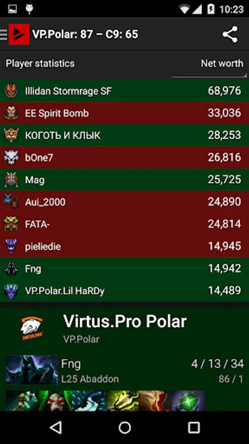 - Player profiles - CS, Net worth, item build, skill builds, and much more