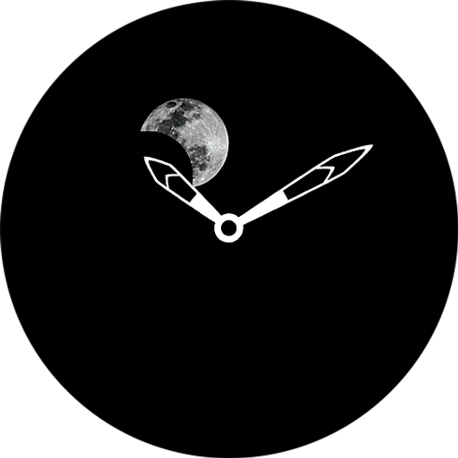 In ambient mode, the hour and minute hands are shown along with the moon phase.